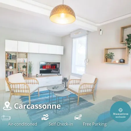 広々とした67m²のカルカソンヌParking Securise -Climatise-Piscine-Terrasse-Amアパートメントはテラスがあり、Evadeo Cyclesから徒歩で5分の場所に位置しています。 歴史的城塞都市カルカソンヌから1.7kmのホテルは、キャヴァイエール湖から4.2kmです。